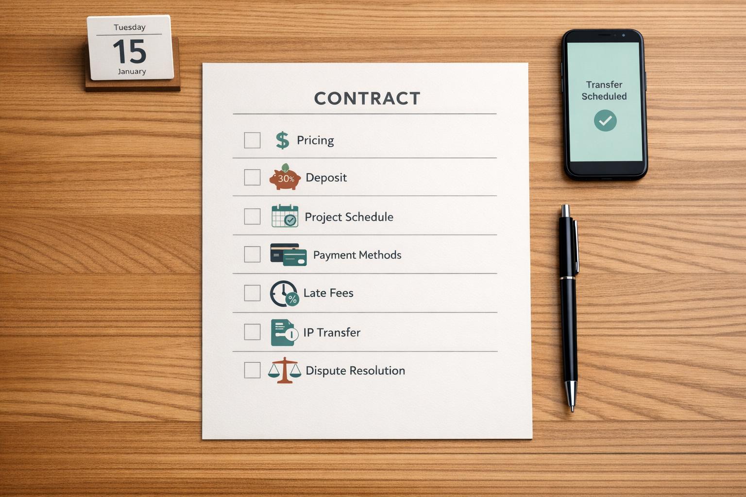 Use these strategies in your next contract to reduce disputes, speed up payments, and focus on what you do best - delivering quality work. Clear, well-thought-out payment terms are the foundation of a steady and reliable income.