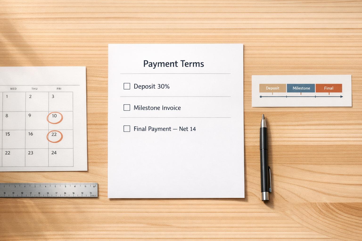 These practices do more than ensure timely payments; they also simplify project management. For example, asking for a 50% deposit can help weed out clients who aren’t serious, while setting Net 15 terms with exact dates removes any confusion about deadlines. For larger projects, milestone billing keeps your financial exposure to a manageable 30–40%, providing an added layer of security and professionalism. Each clear payment term you establish brings you closer to a more stable and efficient freelance operation.